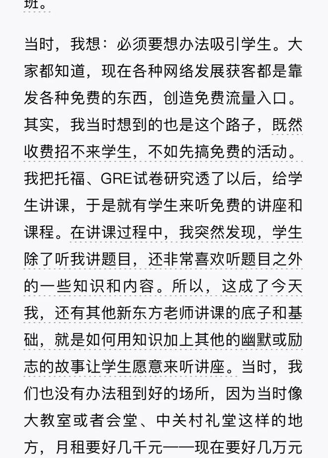 俞敏洪在自传《我曾走在崩溃的边缘》中,叙述过这个开免费讲座讲段子引流,并发扬光大的传统。