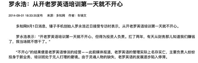 从这篇2014年《多知网》报道来看,罗永浩承认2008年-2010年,老罗英语培训没有盈利。