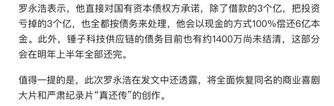 值得一提的是,罗永浩对国有资本约3亿的投资款,并没有像对待郑刚那样,以法律作为最低底线。